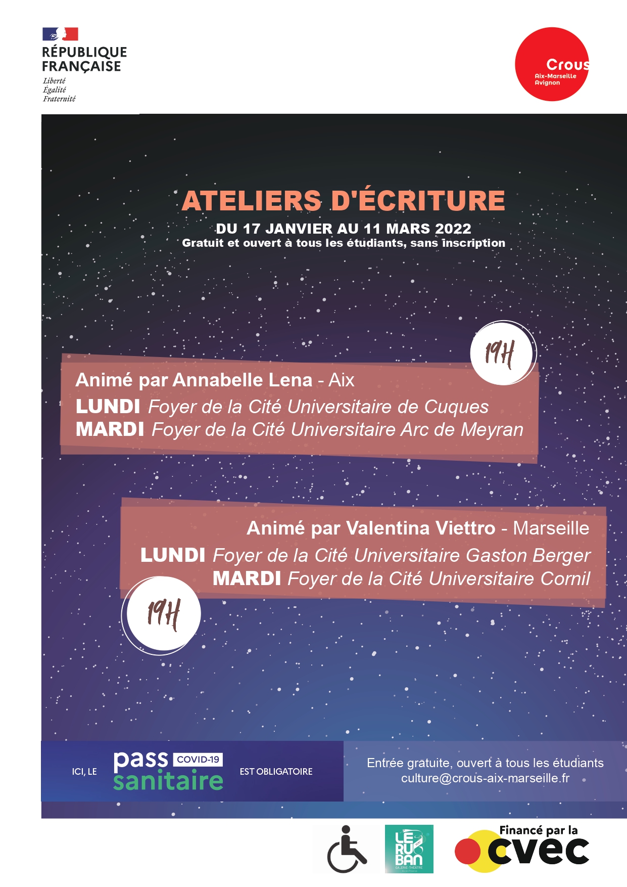 Dans le cadre du concours Rêve et pour soutenir l’écriture, deux ateliers d’écriture gratuits seront organisés à Marseille et à Aix en Provence à partir du lundi 17 janvier, ouverts à tous les étudiants universitaires.
