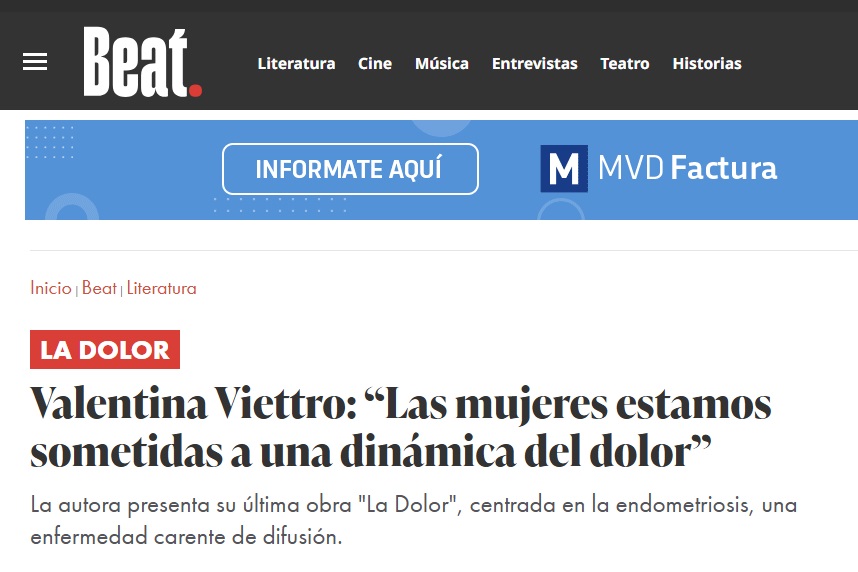 Ultimas noticias : https://www.ultimasnoticias.com.uy/general/valentina-viettro-lanzo-la-dolor-una-obra-reveladora-que-aborda-la-endometriosis_9279.php