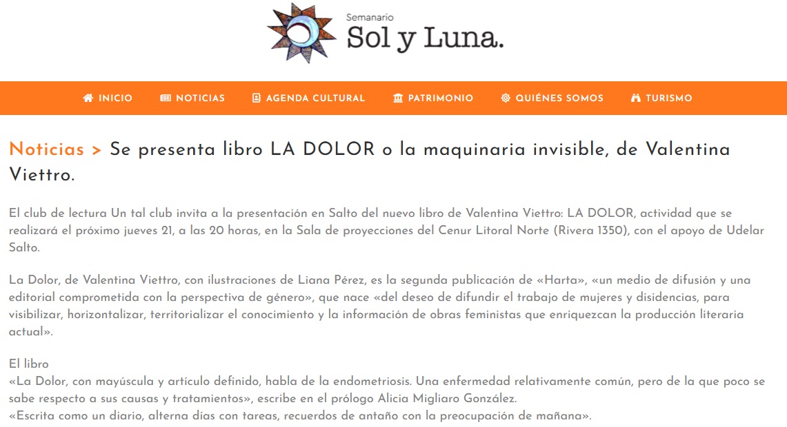 Semanario sol y luna : https://semanariosolyluna.com.uy/2024/11/18/se-presenta-libro-la-dolor-o-la-maquinaria-invisible-de-valentina-viettro/