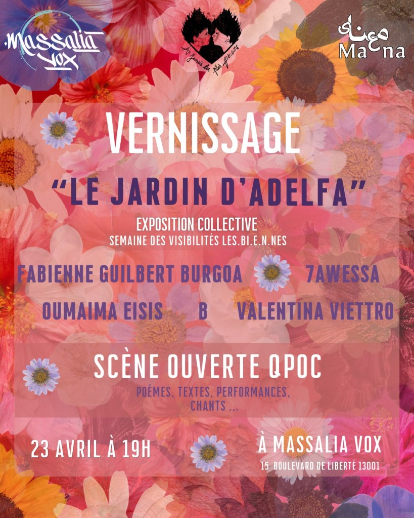 Douceur de miel 🍯 , senteurs florales 🌸 et cocoon tout doux 🥰: c’est l’ambiance de la scène ouverte qui annoncera l’ouverture de l’exposition 🌷 «le jardin d’Adelfa» 🌺, une exposition collective dans le cadre de la semaine des visibilités les.b.i.e.n.nes des oeuvres de: